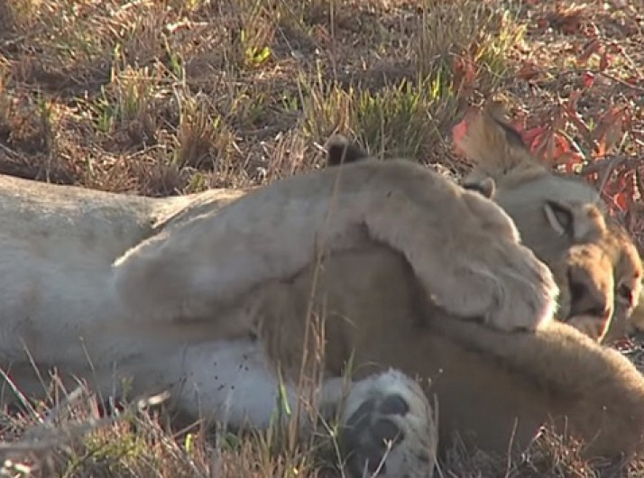 Vídeo mostra filhote recebendo abraço de leoa na África do Sul