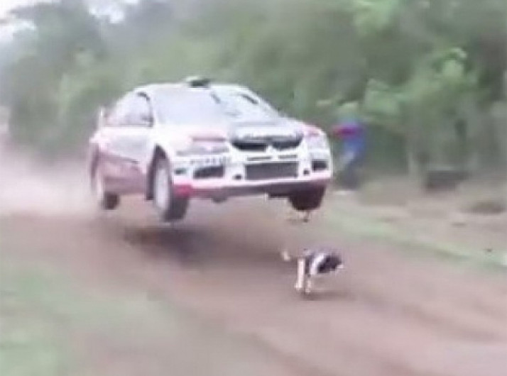 Cachorro se salva de atropelamento em prova de rali na Bolívia