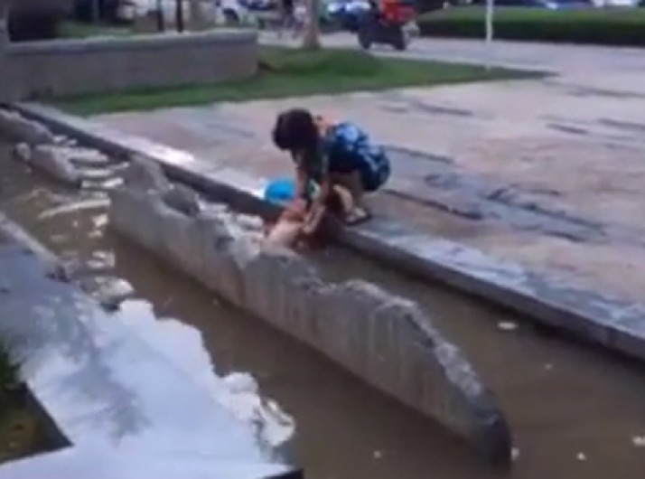 Avó força criança a entrar em água suja para "fortalecer seu organismo"