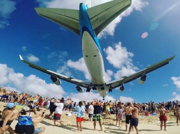 Avião passa próximo a banhistas em ilha caribenha; veja