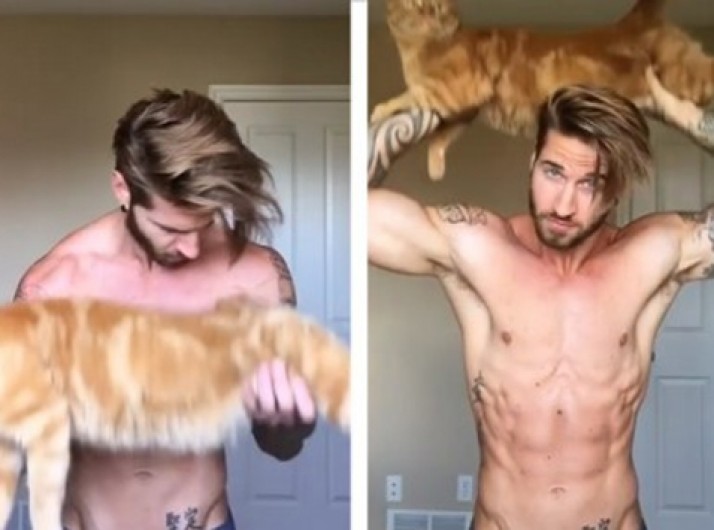 Modelo canadense usa gato como peso em série de exercícios