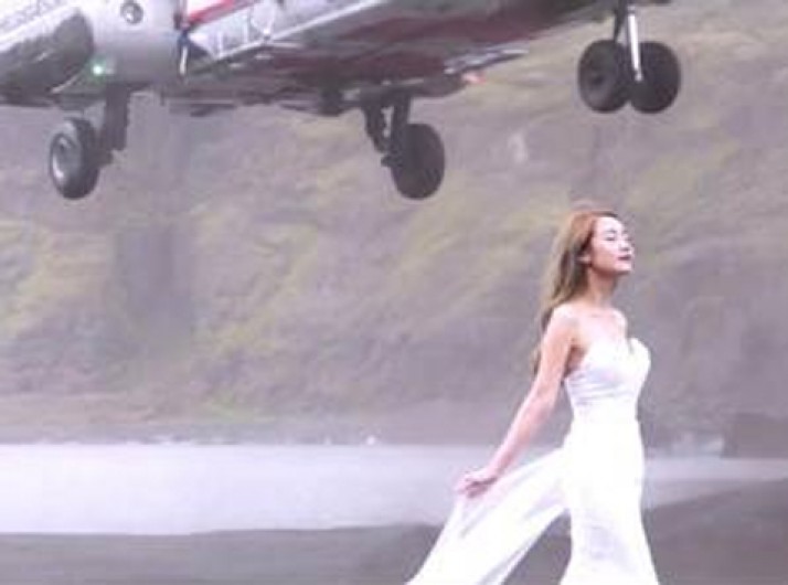 Helicóptero de salvamento quase atinge noiva que fazia fotos em praia