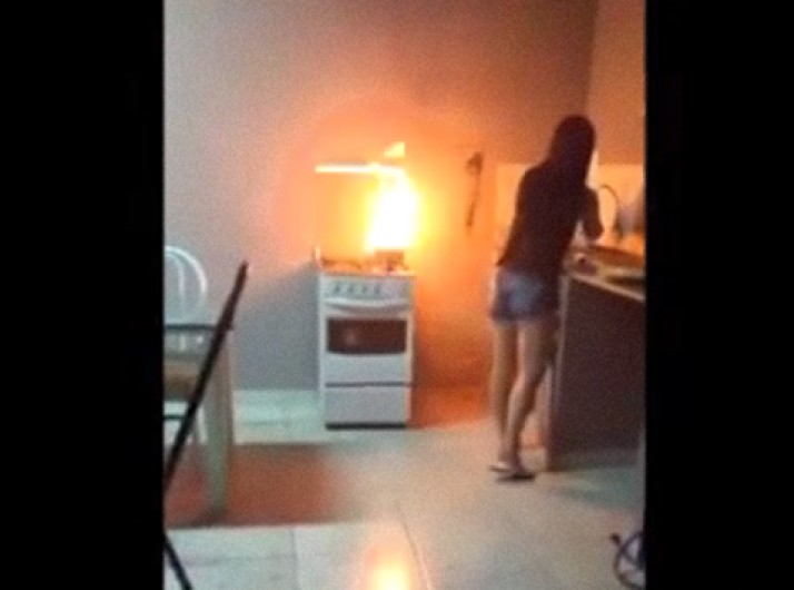 Filha põe fogo em panela e mãe bombeira ensina na web como apagar