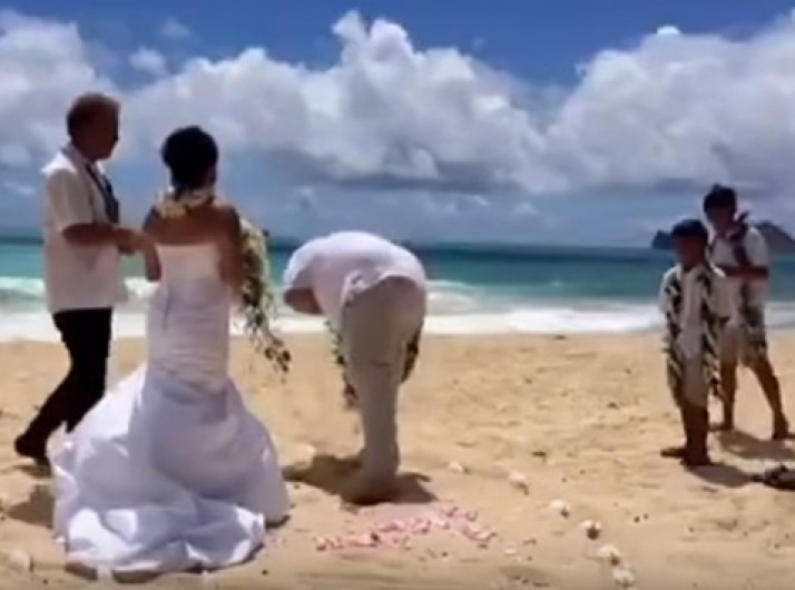 "Na saúde e na doença": Noivo vomita em casamento na praia