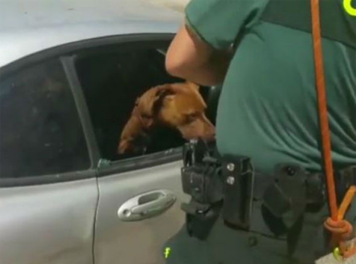 Policiais quebram janela de carro no sol para salvar cão preso