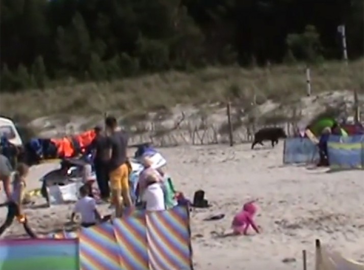 Javali selvagem investe contra banhistas em praia na Polônia