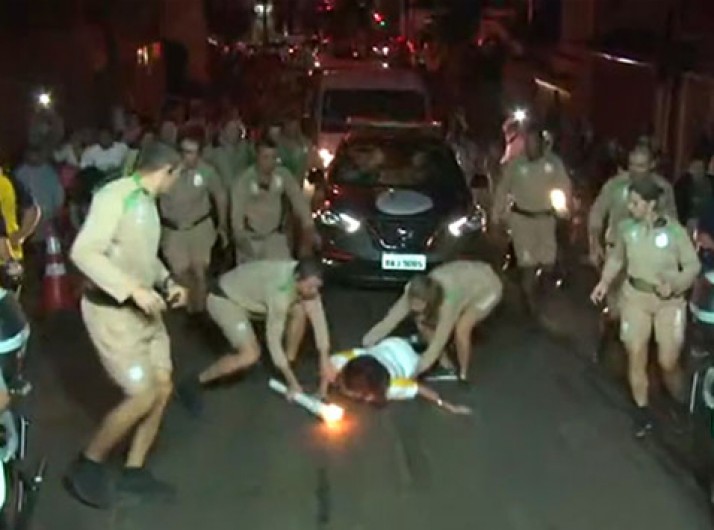 Dona do Magazine Luiza tropeça e cai ao carregar a tocha no interior de SP