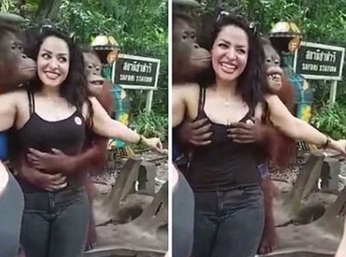 Turista é agarrada por macacos ao posar para fotos em parque