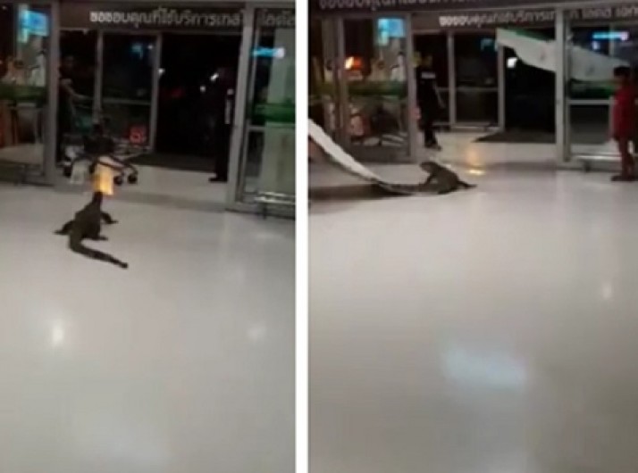 Lagarto enorme invade loja e assusta clientes na Tailândia