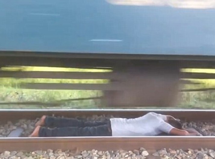 Homem fica deitado em trilhos durante passagem de trem