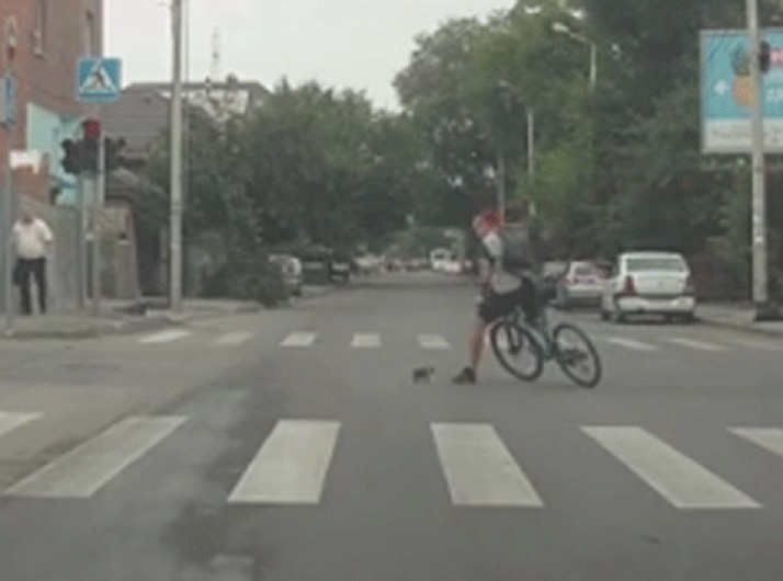 Ciclista resgata gatinho em meio a rua movimentada de cidade russa