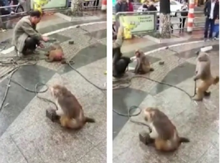 Macaco rouba faca de artista de rua e o ameaça na China
