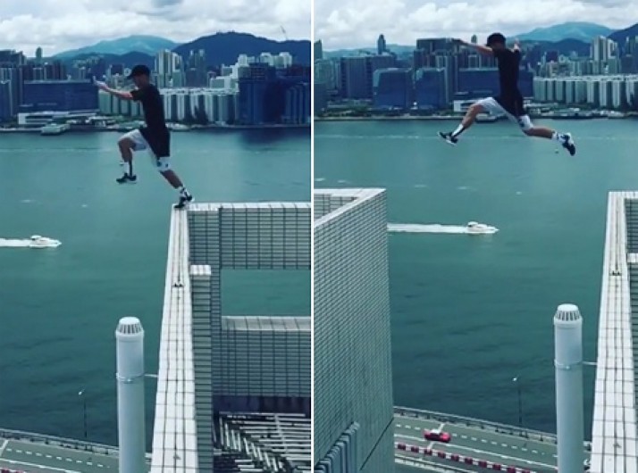 Jovem se arrisca em salto entre prédios em Hong Kong