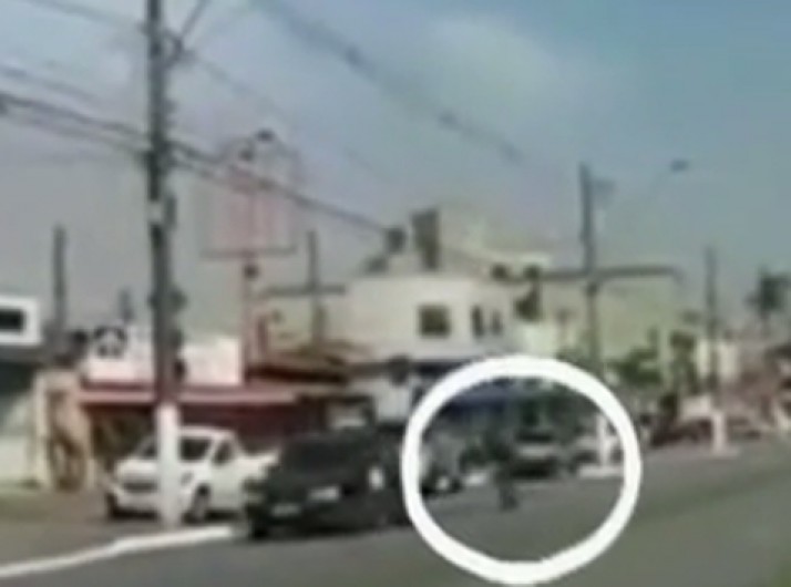 Motorista flagra motociclista "voando" após acidente inusitado de trânsito