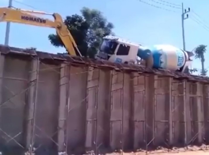 Caminhão de cimento causa acidente e destrói toda a construção