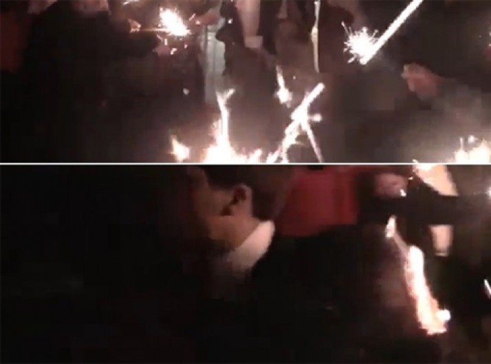 Noiva acaba com o cabelo em chamas ao passar por corredor com fogos