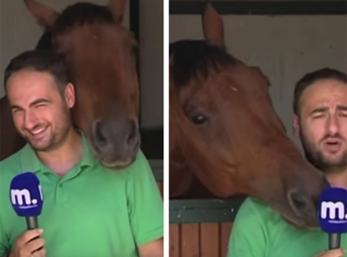 Cavalo "acaricia" repórter durante gravação de matéria e rouba a cena
