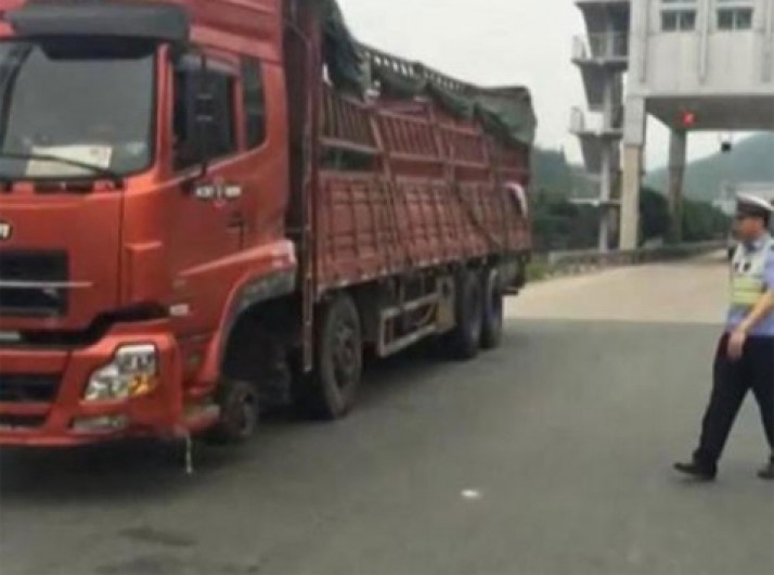 Motorista chinês dirige caminhão sem as rodas dianteiras
