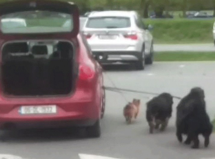 Dono 'preguiçoso' usa carro para levar cães para passear na Irlanda