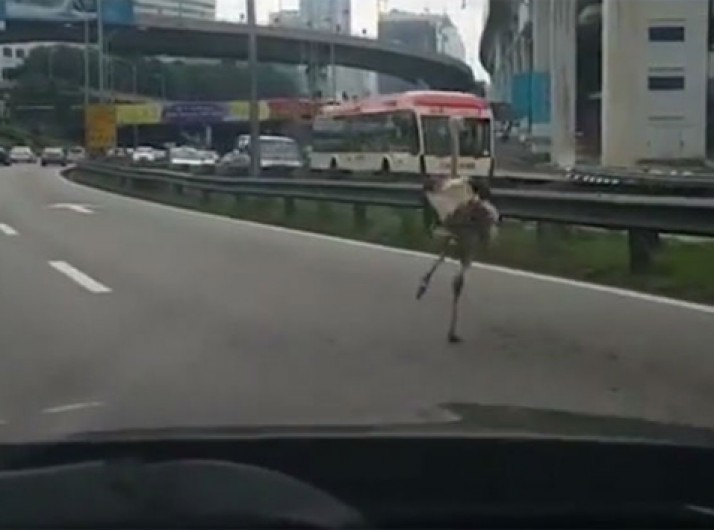 Avestruz é flagrado correndo entre carros na Malásia e vira celebridade