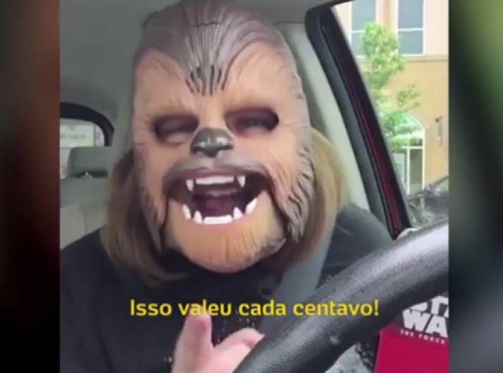 Mulher tem ataque de riso com máscara de Chewbacca e vira hit