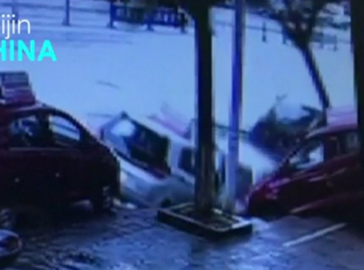 Buraco surge de repente e engole 4 carros na China