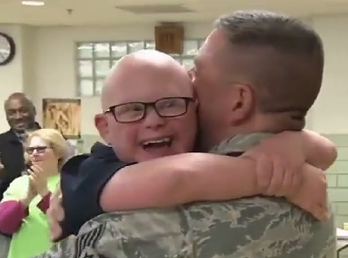 Pai militar surpreende filho com Down na escola e reação é emocionante