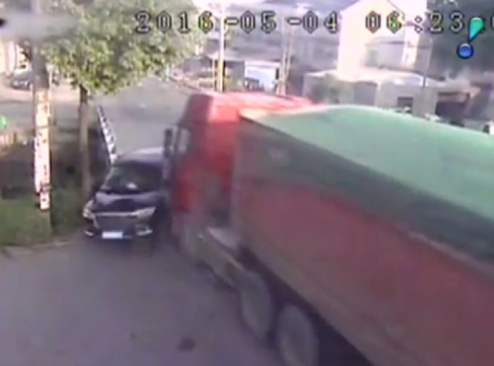 Vídeo impressionante mostra caminhão esmagando veículo na China