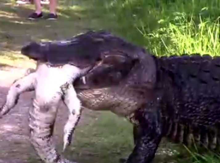Aligátor enorme é visto comendo um exemplar menor da espécie na Flórida