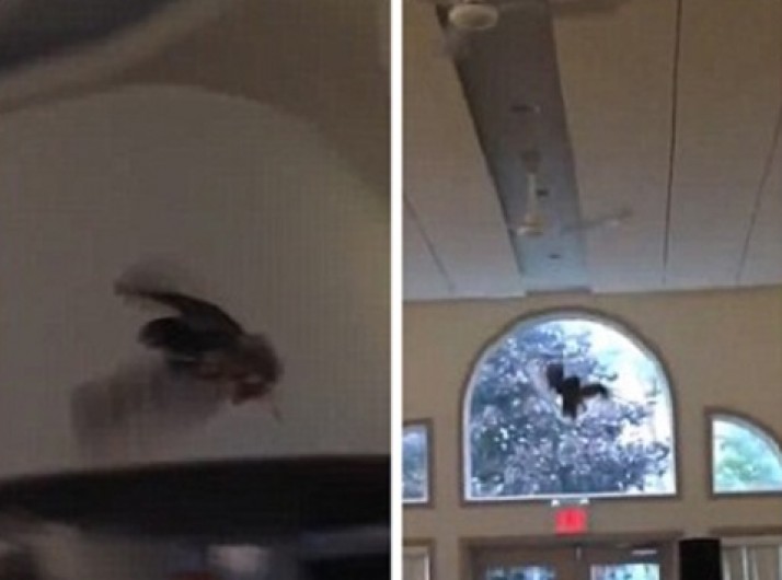 Coruja treinada para entregar alianças bate em vidro de igreja