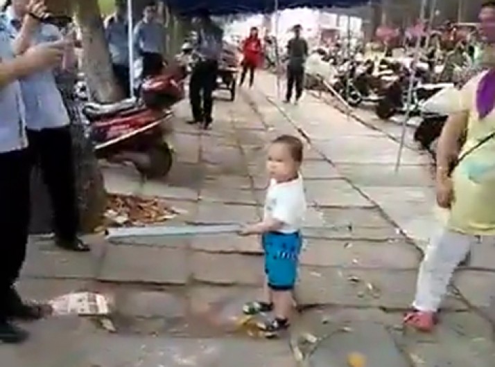 Criança usa bastão de metal para defender avó na China