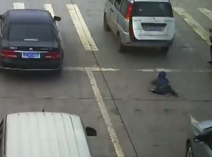 Criança chinesa sobrevive ao cair de minivan e ser atropelada por carro