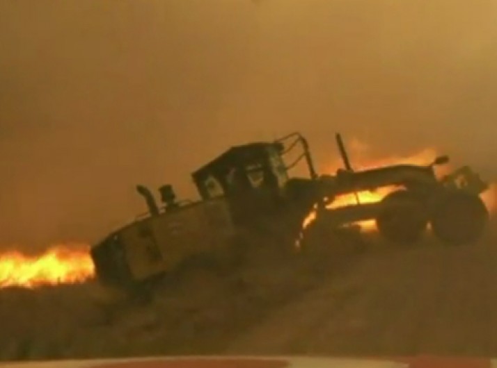 Equipe de TV resgata motorista de trator cercado por incêndio nos EUA