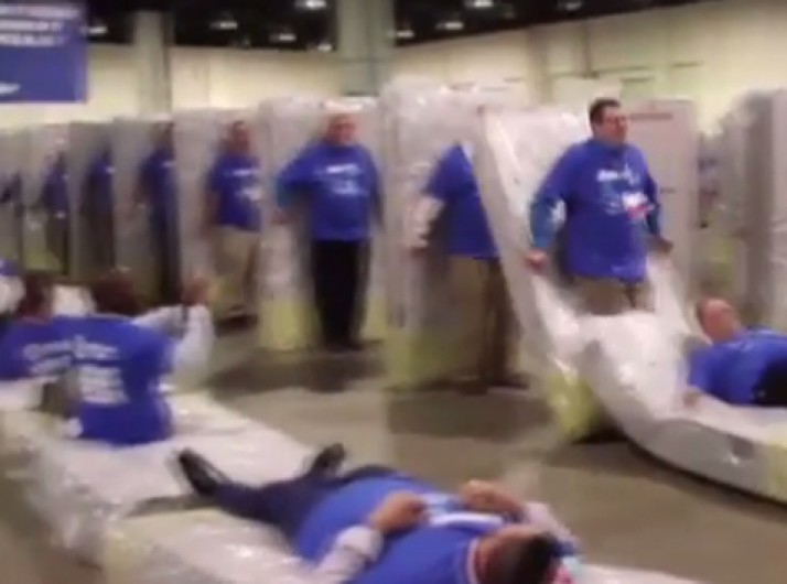 Norte-americanos batem recorde mundial de 'dominó humano sobre colchões'