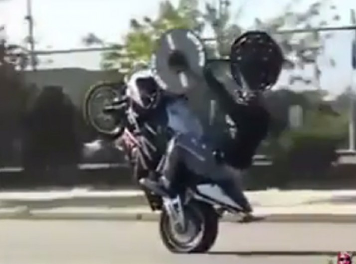 Homem mostra que é possível pilotar moto e malhar ao mesmo tempo