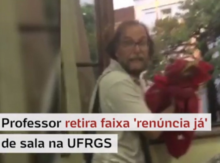 Revoltado, professor retira faixa 'renúncia já' de sala na UFRGS