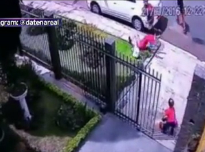 Ladrão empurra vítima no chão na frente do filho que estava brincando