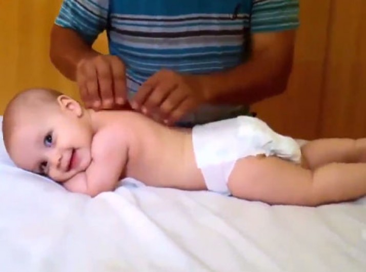 Vídeo mostra bebê fazendo caras e bocas ao receber massagem