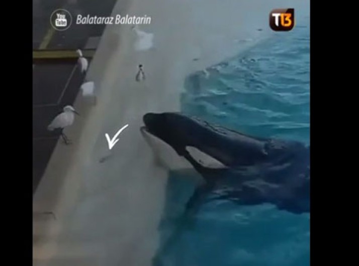 Vídeo mostra Orca usando isca para pegar ave