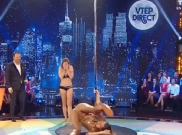 Apresentadora 'se aventura' em pole dancing e passa vergonha ao vivo