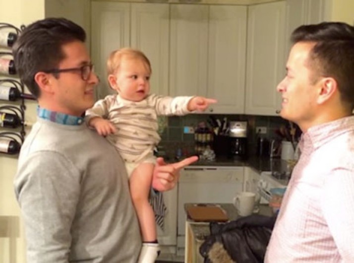Bebê fica confuso ao encontrar irmão gêmeo de seu pai