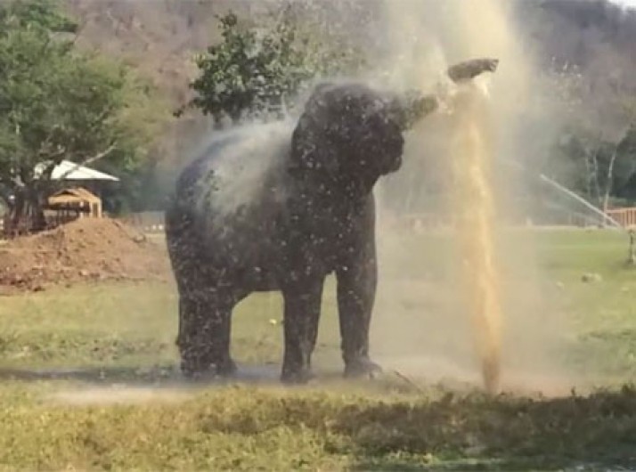 Elefante cria 'lava a jato' particular após quebrar cano em parque