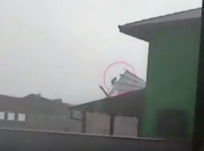 homem 'voa' com telhado durante temporal em Santa Catarina