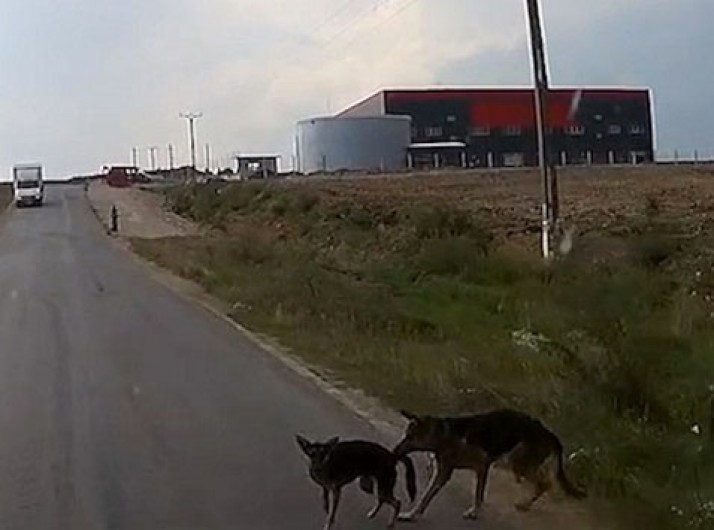 Cachorro arrasta companheiro pelo rabo para evitar atropelamento