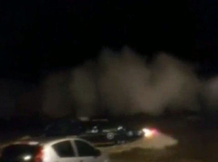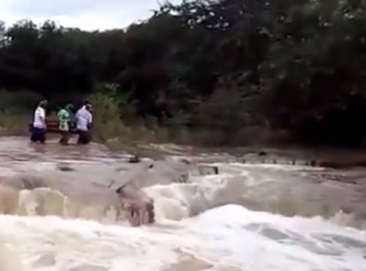 Família carrega caixão por correnteza em via que cedeu após chuva