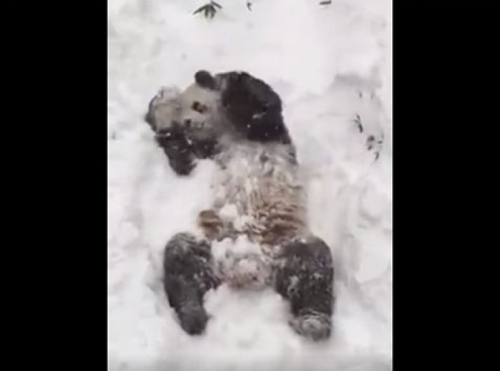 Panda se diverte sozinho na neve nos EUA e vídeo viraliza