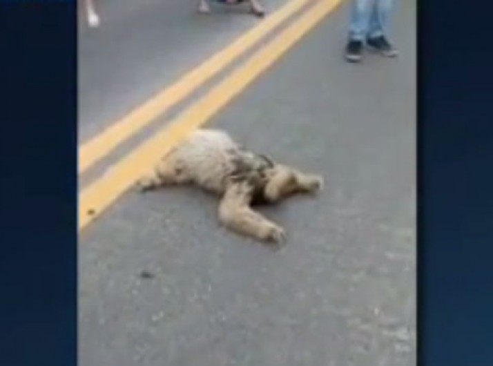 Bicho-preguiça para o trânsito para atravessar estrada em MG