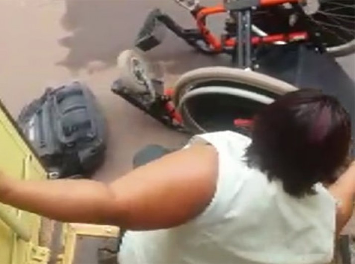 Sem ajuda para descer, deficiente joga cadeira de rodas de ônibus no MA