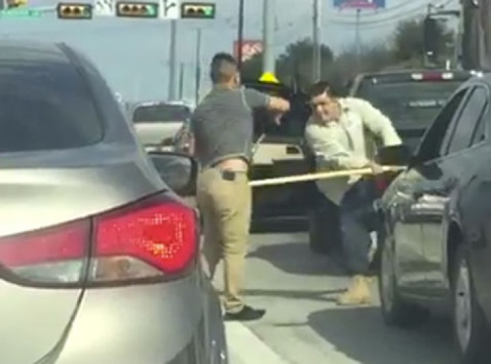 Motoristas brigam no meio do trânsito com taco de beisebol