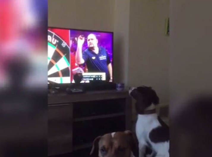Cachorro corre atrás de dardo lançado em programa de TV
